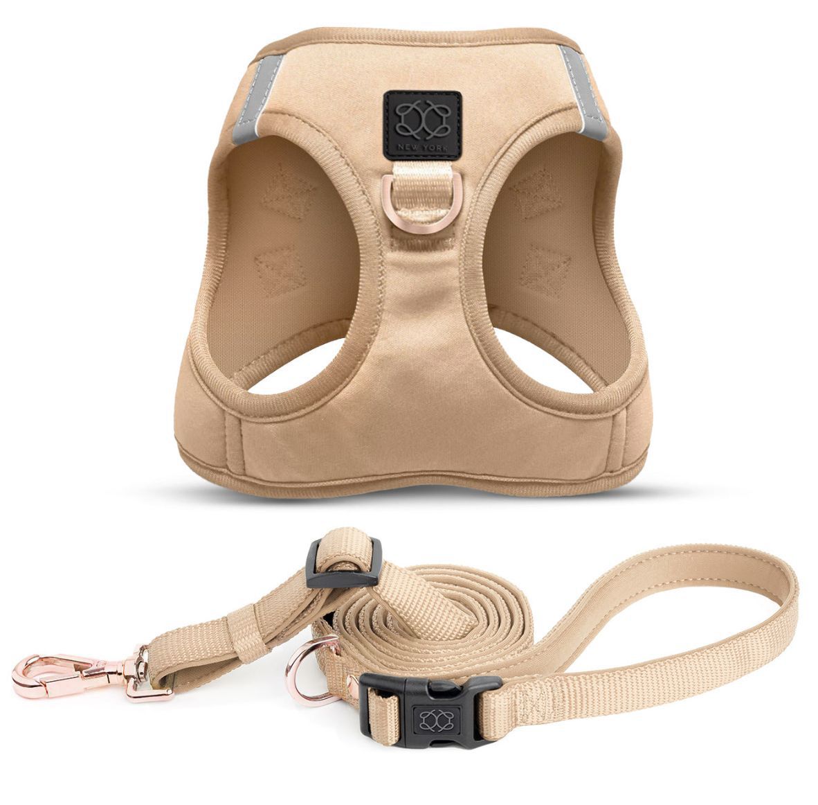 The SoHo Dog Harness comes in a variety of premium, breathable fabrics for comfort. The City Dog Leash is crafted from durable, high-quality nylon with a secure, comfortable, padded handle.