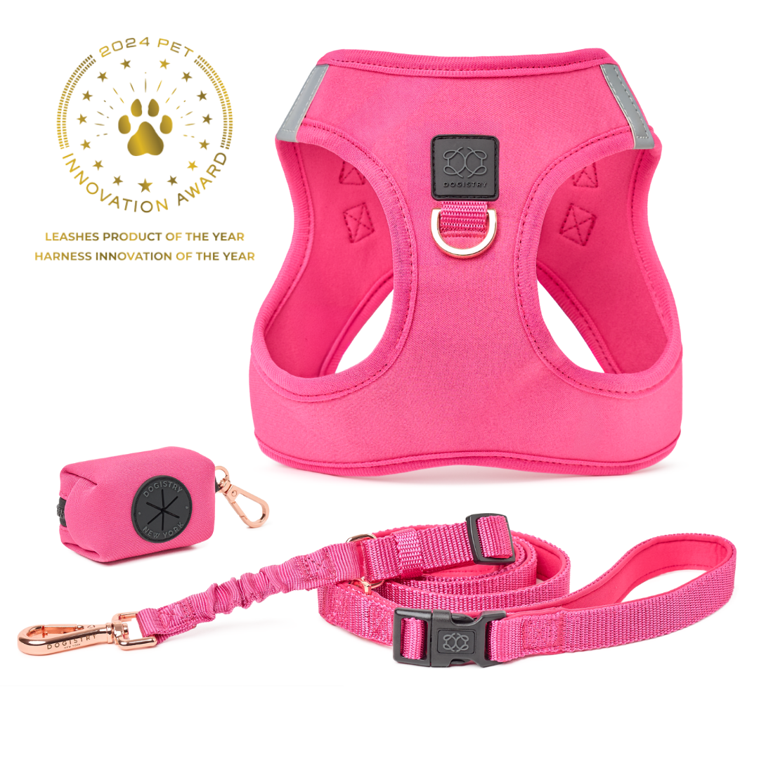 Featuring the Award-Winning Luxe Step-In No-Pull Harness with dual leash attachments (front and back) for a stress-free, no-pull walk every time.