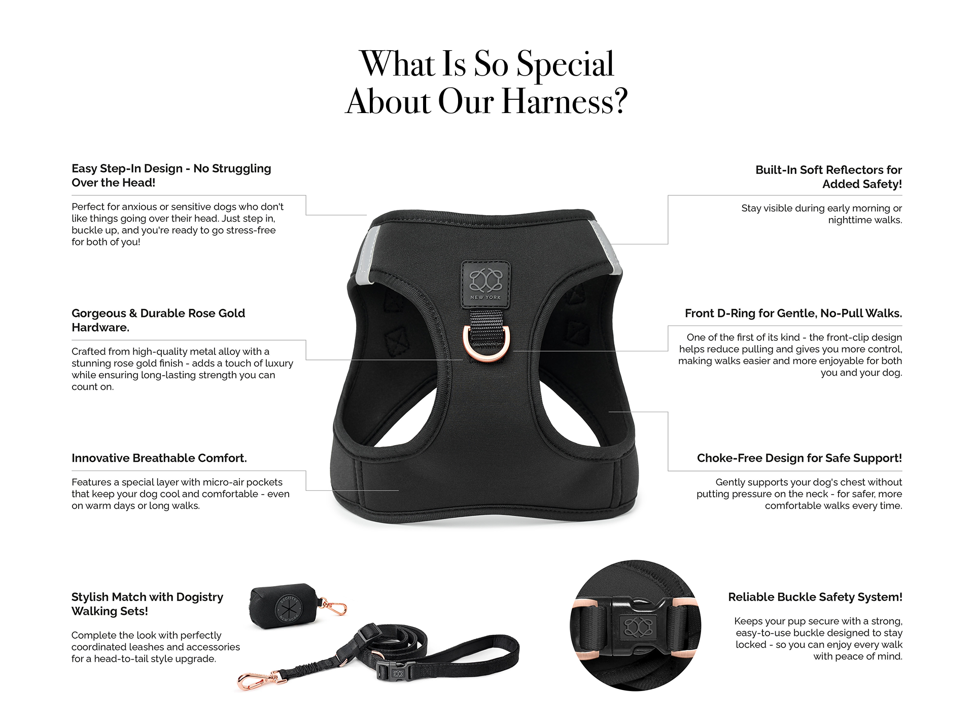 See why hundreds of dog parents are raving about our no-pull harnesses—they've completely changed their dog-walking game! Attaching your leash to the back? That just makes your dog pull harder. But with our front ring attachment, pulling is discouraged as it redirects them sideways for better control!